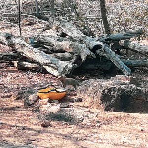 Maar maandag ochtend om 6.00 was ze aan het hek en met haar bruine ogen keek ze me aan…ik zei: ”Goede morgen kleintje” en ik zag dat haar vriendje Goosje er ook was. Deze mongoose is nog schichtiger dan een bokje maar ik ben van plan ook zijn vertrouwen te winnen.