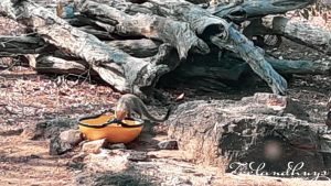 De brutale eekhoorns en de schichtige muisjes die gek zijn op de hondenbrokken en zelfs de vriendjes van Myna, onze Cape Starling die ik nog steeds mis, komen regelmatig voor een hondenbrokje. De Gecko in de meterkast die daar zo heerlijk wegkruipt, ze zijn me allemaal even lief. De Dassies komen nu ook al voor jonge uitlopers en blaadjes in de boom aan het terras…soms denk ik wel eens dat dat elektrisch hekwerk niet echt goed werkt.