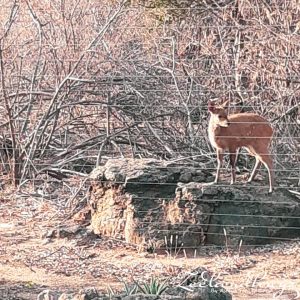 Als ik het kleine bushbokje achter ons hek zie lopen word ik al blij. En bij gewone rustige bewegingen blijft ze staan en houd me nauwkeurig in de gaten. Ik kan de was ophangen en rustig tegen haar praten dat vind ze allemaal goed.