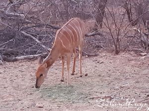 Maandag tegen zonsondergang staat de familie Nyala aan de poort, Papa, Mama, 2 tantes en een kalfje. Die familie is al gewend aan mijn geklets, een beetje zoals Jan…ze horen me maar zeggen niets terug, maar zijn geïnteresseerd als het om lekkere hapjes gaat!