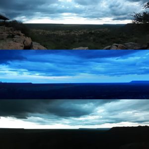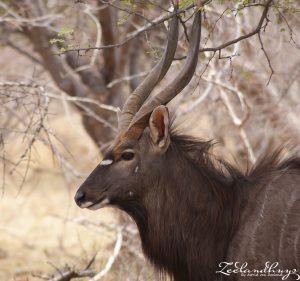 Met het weinige slapen, ben ik wel alert op de geluiden van de dieren bij nacht en vroege ochtend. Hoef getrappel onder me dan zijn het de Gnoe’s en Zebra’s, als het klikt, ga ik 40 meter onder me op zoek naar de Elanden. Elanden maken namelijk zo’n klik geluid dat uit hun enkels komt als ze lopen. Jakhalzen of Hyena,s zijn er ’s avonds laat of in de vroege ochtend en de uil lijkt ook steeds vaker wat dichter bij huis te komen.