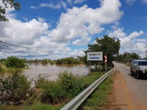 De Tambotie rivier hier 8 km vandaan is ver buiten haar oevers en ook de Mogol en de Mokolo dam moeten veel water verwerken.