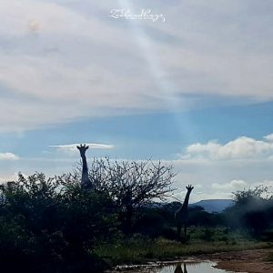 Mijn favoriete ontmoeting is toch wel met de giraffes, dus stik jaloers als ik weer eens doggie-sit en Jan naar t dorp rijdt en ze tegenkomt…