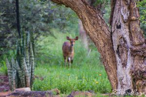 Ik hoor t tikken van en specht en spot hem… fotograferen is dan een ander verhaal. Kleyntje en Bebè lopen we met regelmaat tegen het lijf en Jan heeft samen met de honden een op 3 meter afstand ontmoeting met Die Papa. Ik sta’ s nachts buiten met paraplu en merk bij het uitschudden pas op dat er een vette gecko in verscholen zit. Regen zorgt vaak ook voor schorpioenen dus daar zijn we nu ook extra alert op!