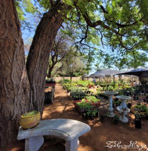 Eigenlijk zo jammer dat je bij dit tuincentrum, een zo mooie plek onder de bomen, geen koffie kunt drinken met natuurlijk iets lekker zoets erbij. Heerlijk in de schaduw een beetje rondkijken en ideeën opdoen voor een tuinplan. Genieten van het Zoete Leven…