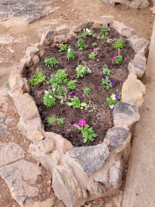 Twaalf Augustus besloot ik  in de nieuwe rotsbloembakken allerlei zaden te strooien, zodat we snel en goedkoop een mooie bloemen zee zouden hebben langs het looppad naar de keuken en het terras op de rotsen.